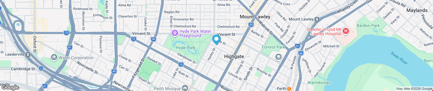 Highgate is an inner-city suburb just two kilometres from Perth which boasts a charming mix of art deco influenced real estate and vibrant urban entertaining sectors. Home to many restaurants, Highgate is a popular destination for dining with plenty of social establishments within the suburb.